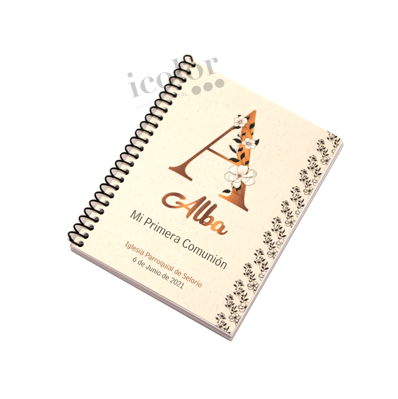 Recordatorio de comunión en libreta.