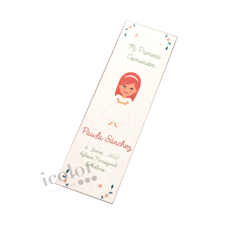 Marcapáginas sencillo de primera comunión con montaje fotográfico.