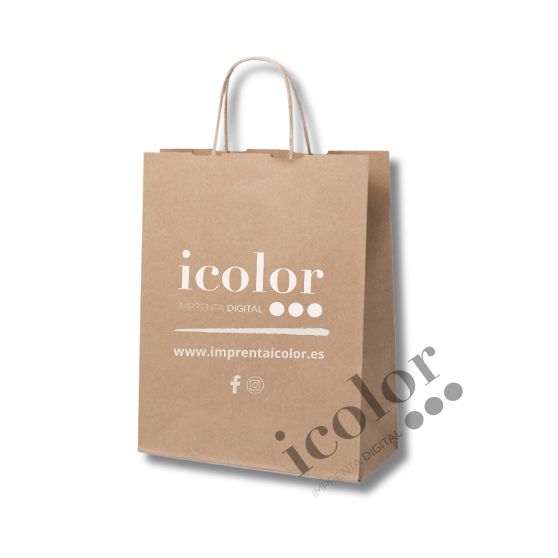 Bolsa de papel personalizada con logotipo mediana con asa retorcida, personalizada a 1 tinta.