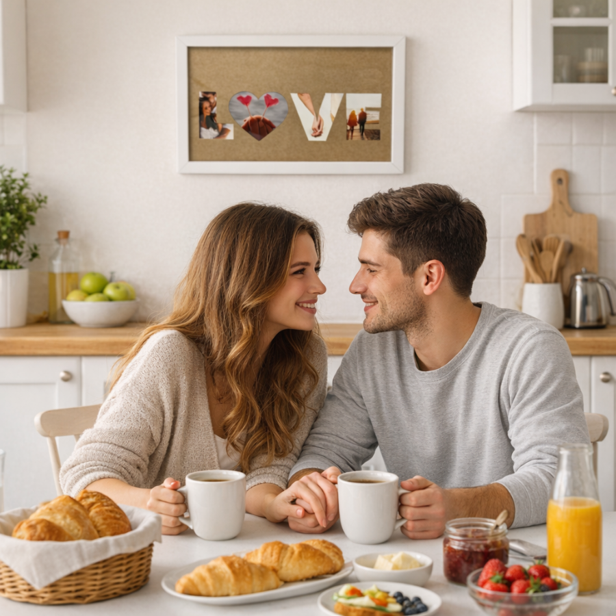 Cuadro para el día de los enamorados con fotos, y passepartout personalizado.