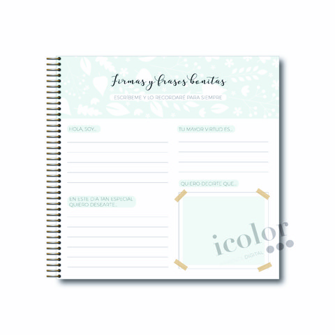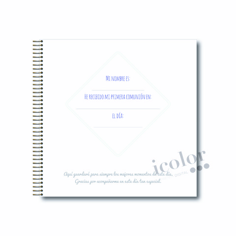 Un bonito recuerdo de tú comunión, donde podrás poner las fotos de tus invitados, así como guardar para el recuerdo,