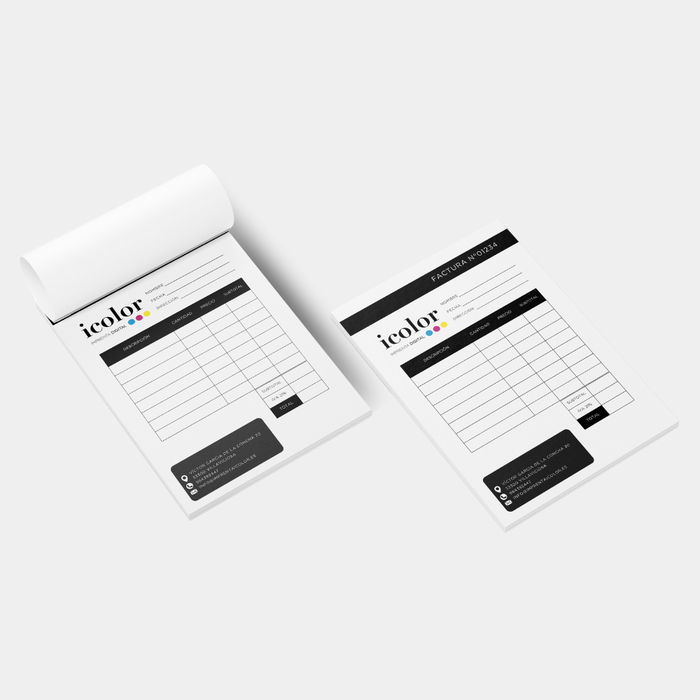 Posibilidad de talonarios impresos a color, o impresos a doble cara bajo presupuesto pinchando aquí