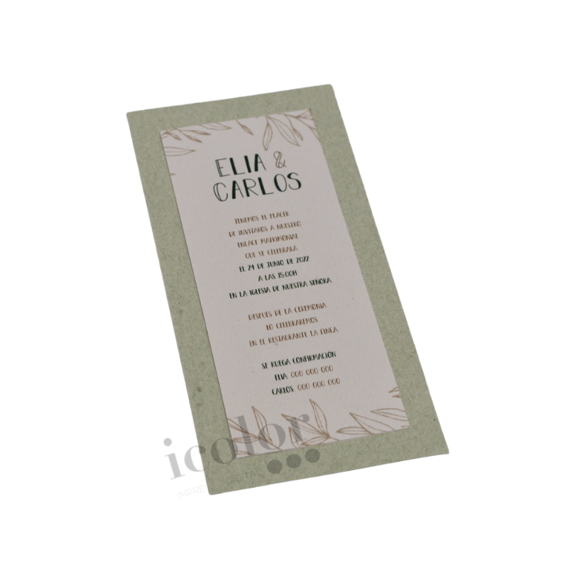 Invitación de boda en papel de algodón proveniente de residuos de ropa verde